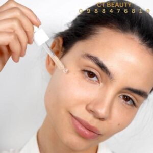 – Sau bước làm sạch và cân bằng da, thoa lượng tinh chất vừa đủ lên da đã khô, massage nhẹ nhàng, tránh vùng mắt cho đến khi thẩm thấu hết.